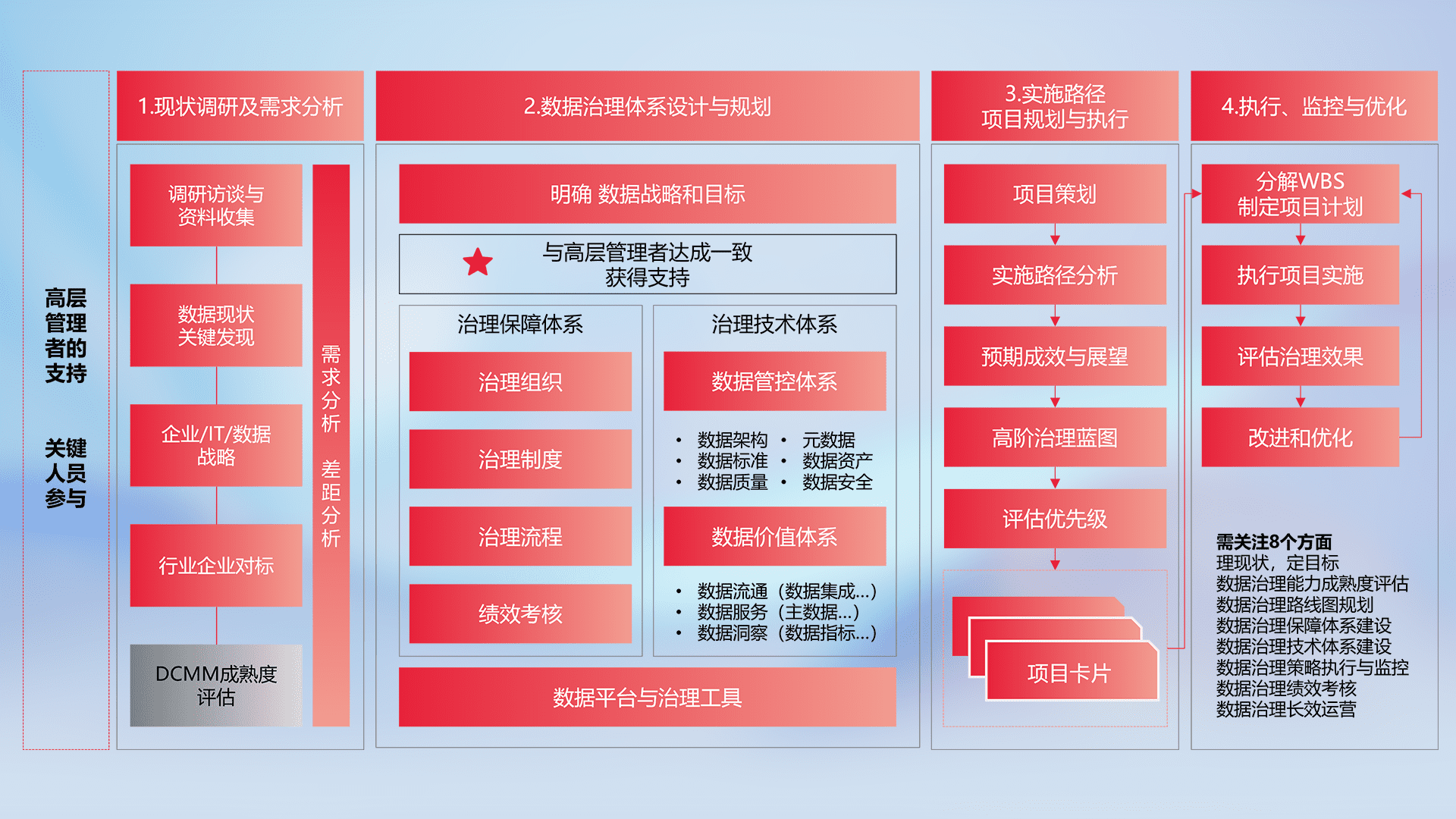 制定并执行统一的数据标准,,规范数据定义和格式,,,,消除冗余和不一致性,,实现跨部门和跨系统的数据一致性,,为企业提供标准化的数据基础。。